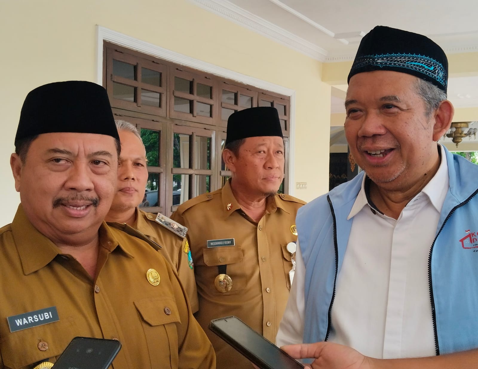 Caption Foto : Staf Ahli Bidang Ekonomi Maritim Sygeng Santoso dan Bupati Jombang Warsubi saat diwawancarai