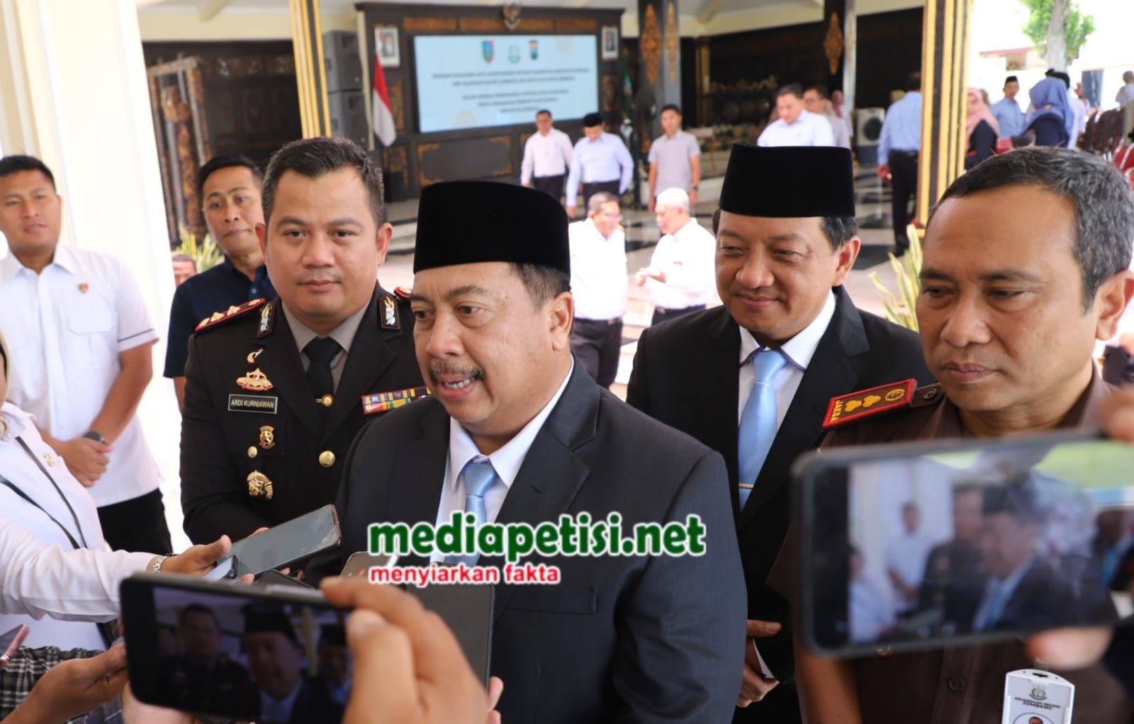 Caption Foto : Dari kiri Kapolres Ardi, Bupati Warsubi dan Kajari Nul Albar saat diwawancarai