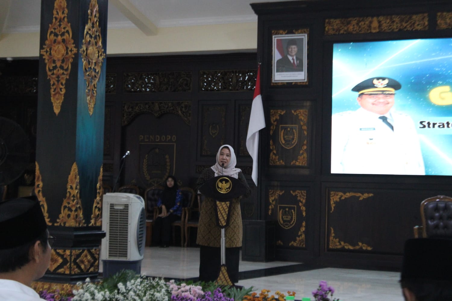 Caption Foto : Staf Ahli Keuangan, Ekonomi, dan Pembangunan Sri Surjati saat sambutan