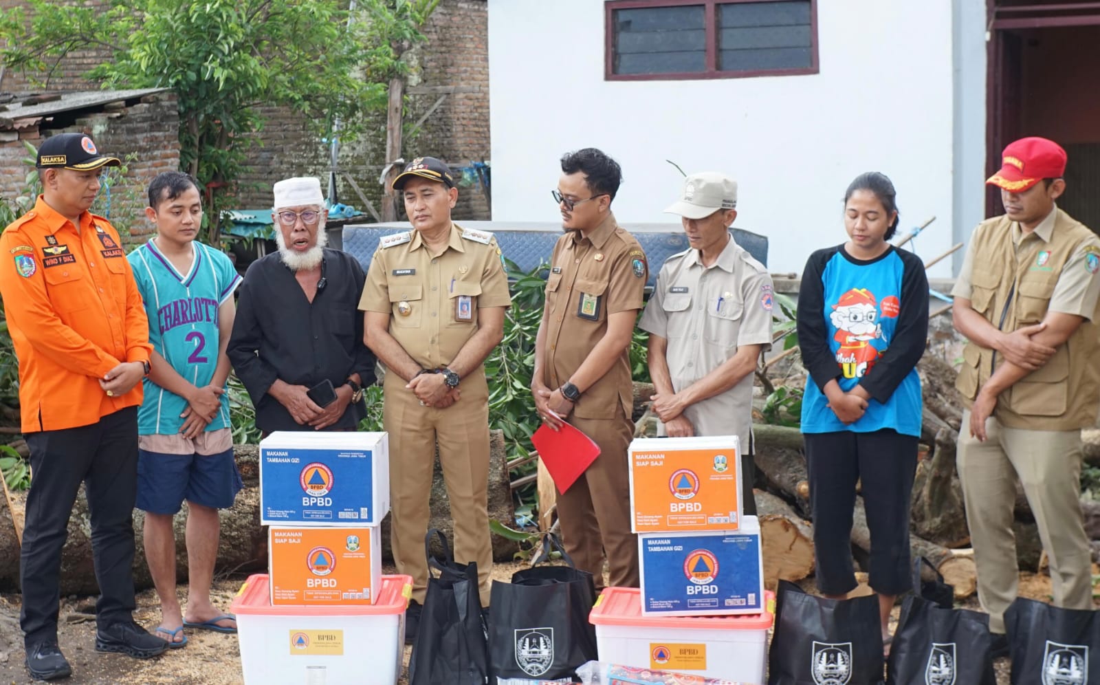 Caption Foto : Tim Gabungan BP saat menyerahkan bantuan kepada korban bencana