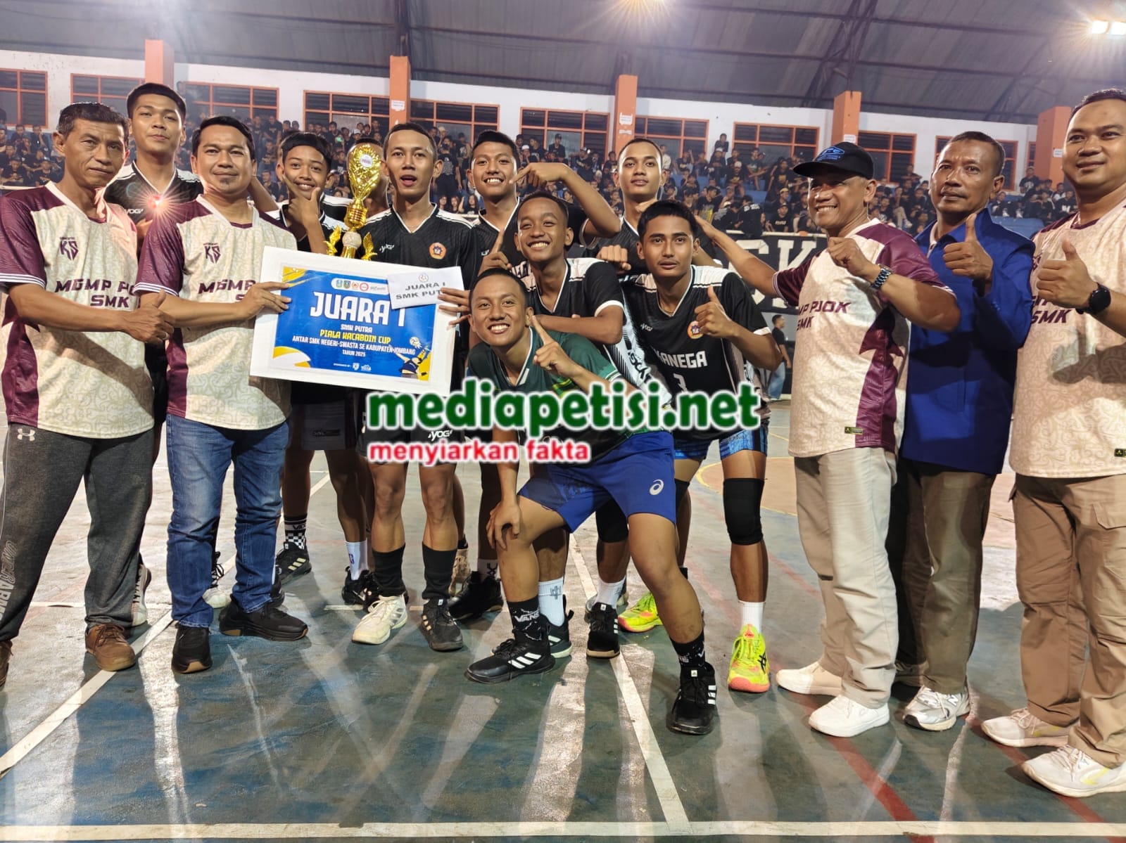 mediapetisi.net – Sorak sorai dan semangat membara mewarnai Final Putra Turnamen Voli Kacabdin Cup 2025 Sekolah Menengah Kejuruan (SMK) Negeri dan Swasta se-Kabupaten Jombang. Selasa Malam (11/11/2025)