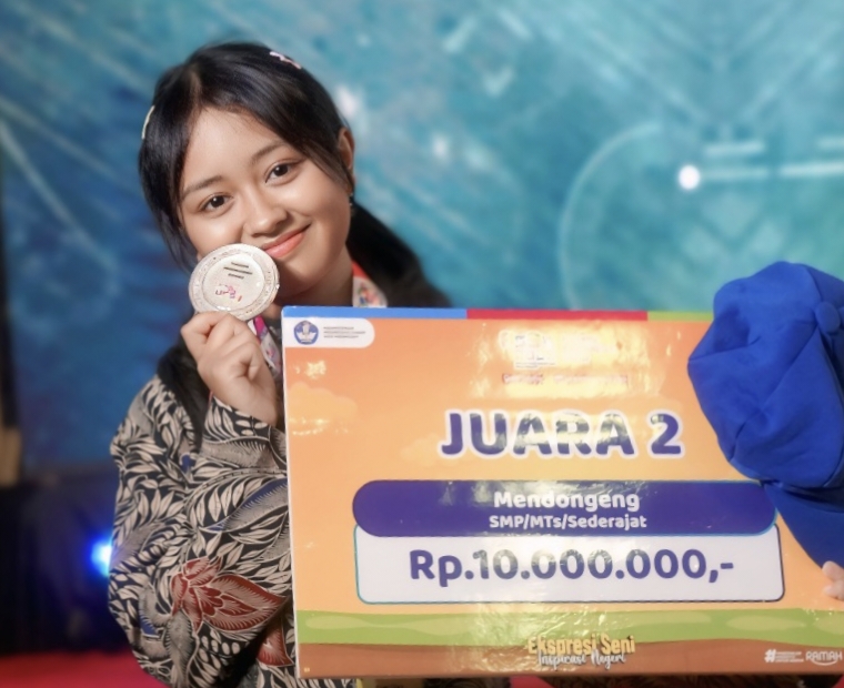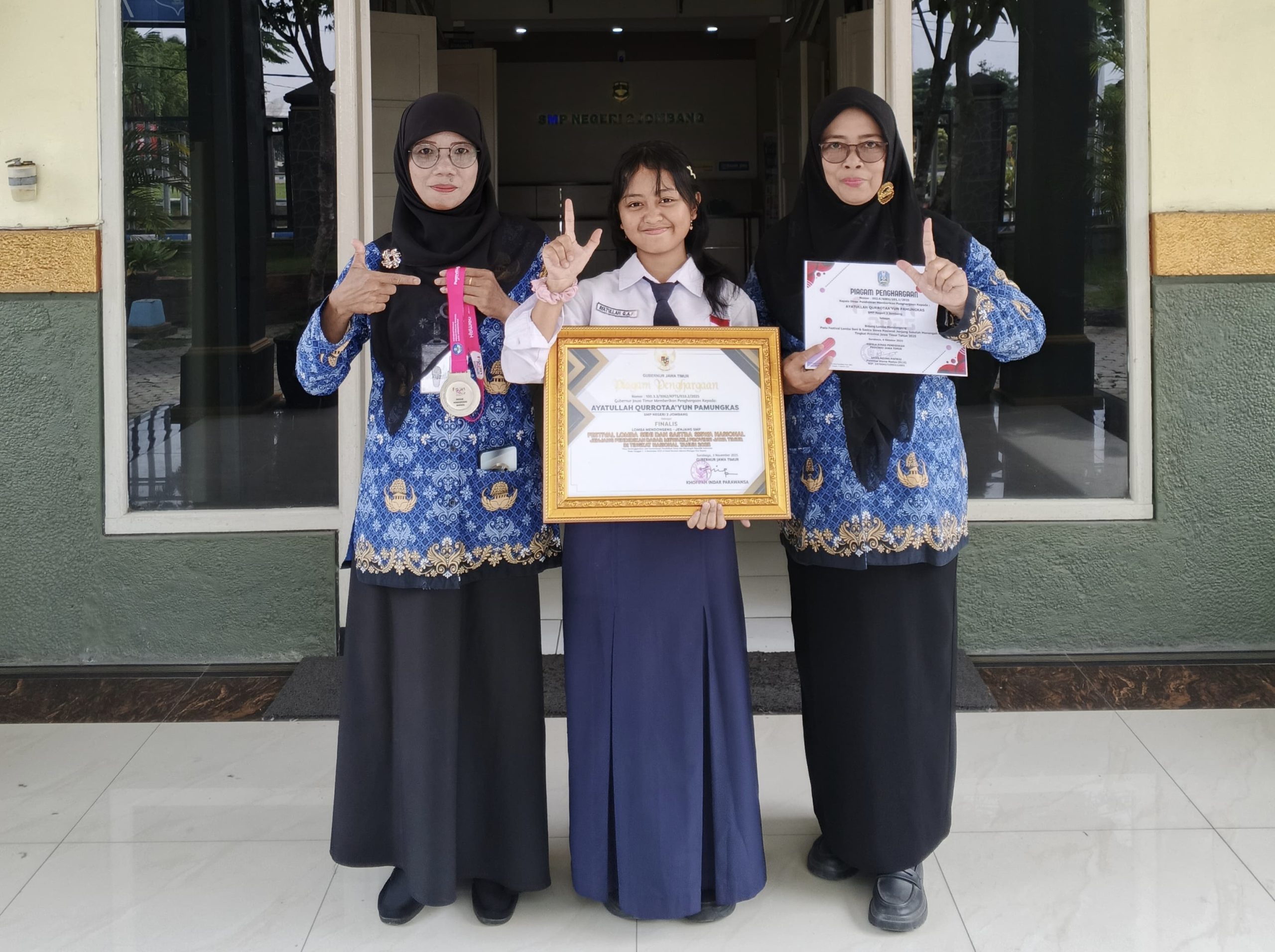 mediapetisi.net – Ayatullah Qurrotaa’yun Pamungkas siswa kelas VIII-H SMP Negeri 2 Jombang menorehkan prestasi membanggakan pada ajang Festival dan Lomba Seni Siswa Nasional (FLS3N) Kementrian Pendidikan Dasar dan Menengah (Kemendikdasmen) Tingkat Nasional 2025 yang digelar di Novotel Jakarta Mangga Dua Square, Jakarta Utara, pada 3–8 November 2025.