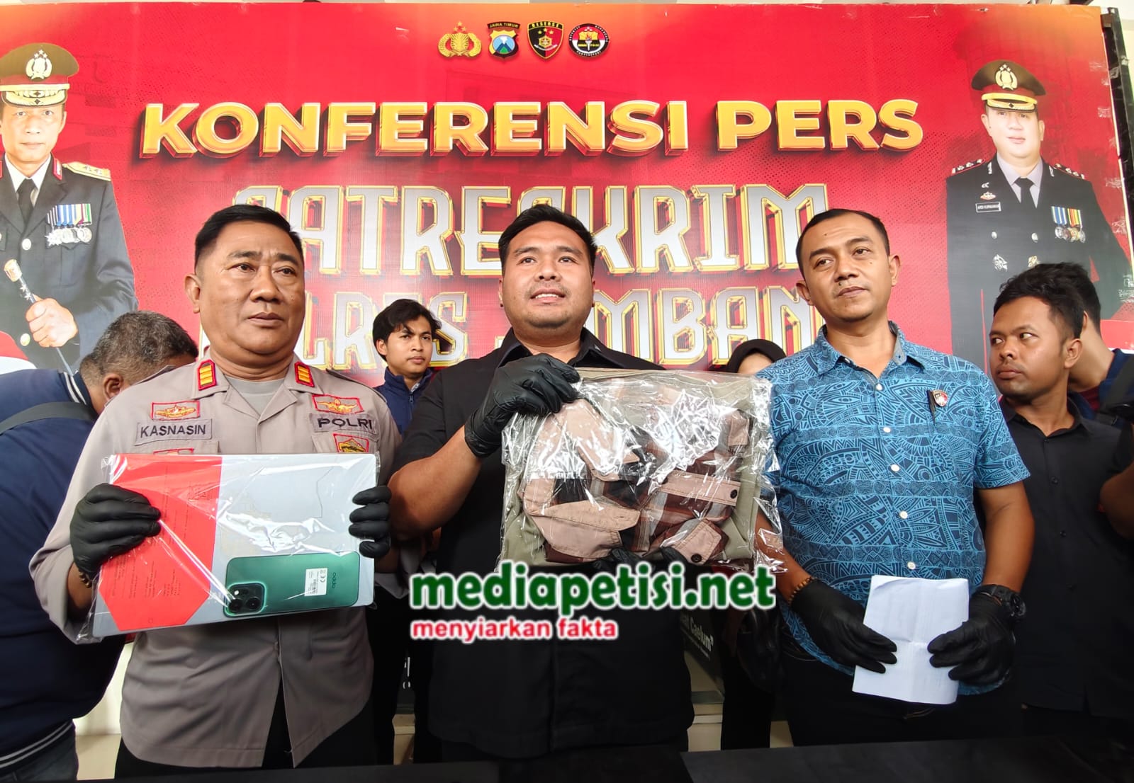 Caption Foto : Kasat Reskrim AKP Dimas Robin saat menunjukkan barang bukti