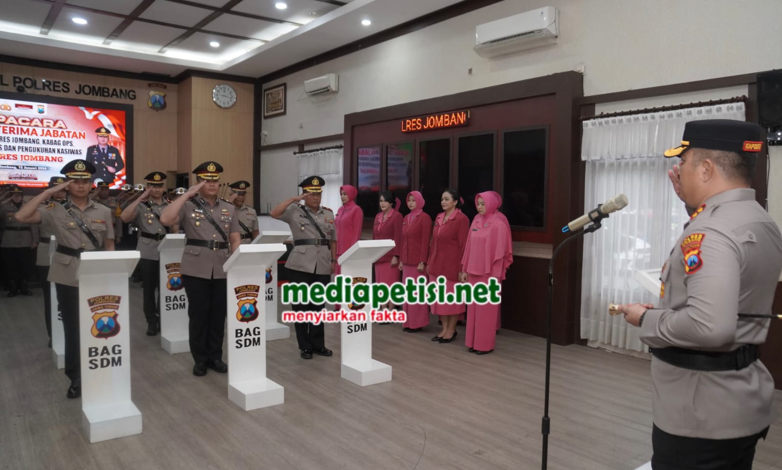 mediapetisi.net – Polres Jombang menggelar upacara serah terima jabatan (sertijab) Wakapolres, Kabagops, Kasat Lantas serta pengukuhan jabatan Kasiwas dipimpin oleh Kapolres Jombang AKBP Ardi Kurniawan dan diikuti oleh jajaran pejabat utama Polres Jombang, para Kapolsek, serta anggota yang ditunjuk. Bertempat di Ruang Jombang Command Center Mapolres Jombang. Kamis (15/1/2026)