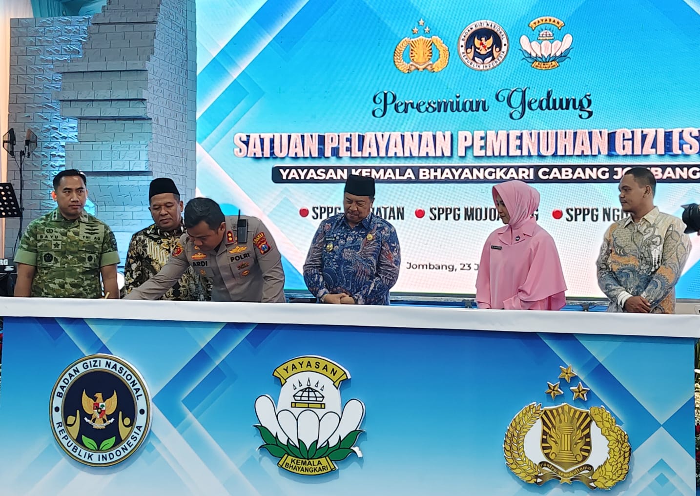Caption Foto : Kapolres Jombang saat menandatangani prasasti peresmian 3 SPPG
