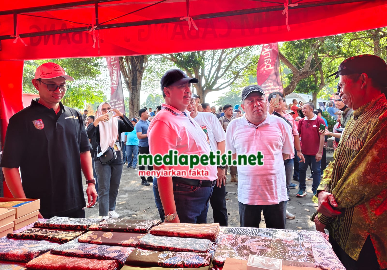 Caption Foto : Bupati Warsubi, Wabup, Pimca Bank Jatim dan Plt Kepala Disporapar saat meninjau lapak UMKM
