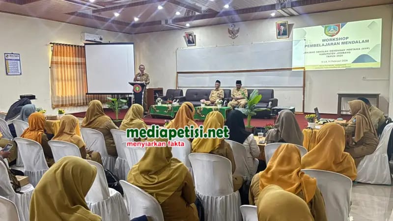 mediapetisi.net – Dinas Pendidikan dan Kebudayaan (Disdikbud) Kabupaten Jombang menggelar Workshop pembelajaran mendalam (deep learning) bagi guru SMP tahun 2026 dibuka oleh Kepala Disdikbud Jombang Wor Windari melalui Sekretaris Disdikbud Jombang Abdul Majid di Aula Tut Wuri Handayani, Gedung PGRI Jombang. Senin (9/2/2026)