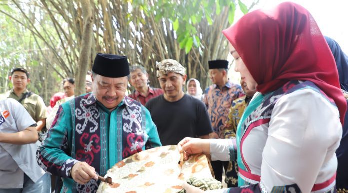 Caption Foto : Bupati Jombang Warsubi didampingi istri saat meninjau stand batik