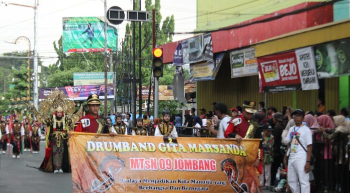 Caption Foto ; MTsN 9 Jombang saat tampil Jombang Cultural Marching Competition 2025