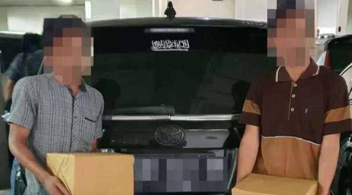 Caption Foto : Petugas Bea Cukai saat mengamankan rokok ilegal