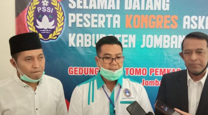 Caption Foto : Ketua ASKAB PSSI kabupaten Jombang terpilih saat diwawancarai