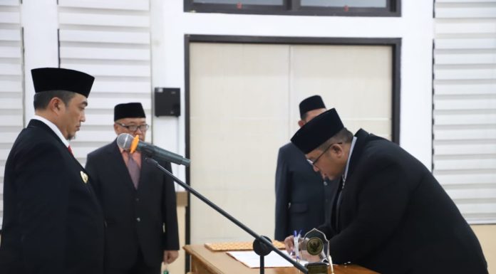 Caption Foto : Pj Bupato Jombang saat melantik tiga Kepala OPD di lingkup Pemkab Jombang