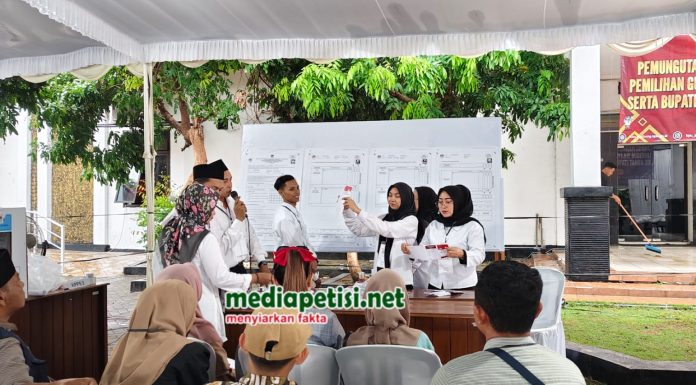 Caption Foto : Petugas KPPS saat menghitung surat suara