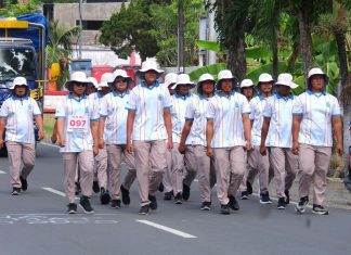 Caption Foto : Pegawai Perumdam Tirta Kencana Jombang saat menikuti gerak jalan Rojo