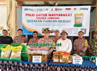 mediapetisi.net - Gerakan pangan murah oleh Polri untuk masyarakat, Polres Jombang melalui Polsek Tembelang menyalurkan harga beras, gula dan minyak goreng curah di desa Pulogedang...