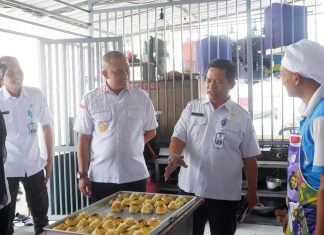 Caption Foto : Kalapas Jombang bersama Plt Kepala UPT BLK Jombang saat meninjau Warga Binaan membuat Roti