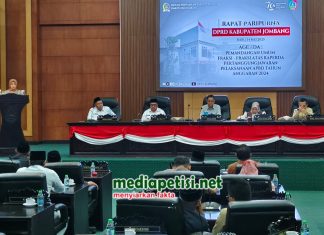 mediapetisi.net - Rapat Paripurna DPRD Jombang penyampaian PU (Pandangan Umum) Fraksi terhadap Rancangan Peraturan Daerah (Raperda) Pertanggungjawaban Pelaksanaan APBD Tahun Anggaran 2024 dipimpin...