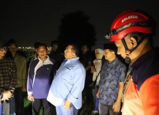 Caption Foto : Bupati Warsubi saat meninjau putusnya tanggul di desa Pucangsimo