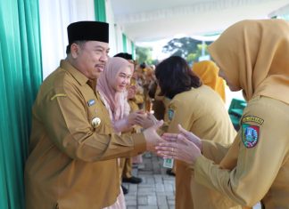 Caption Foto : ASN Pemkab Jombang saat menyalami Abah Bupati