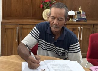 Caption Foto : Warga saat menandatangani pelepasan hak atas tanah Sekolah Rakyat